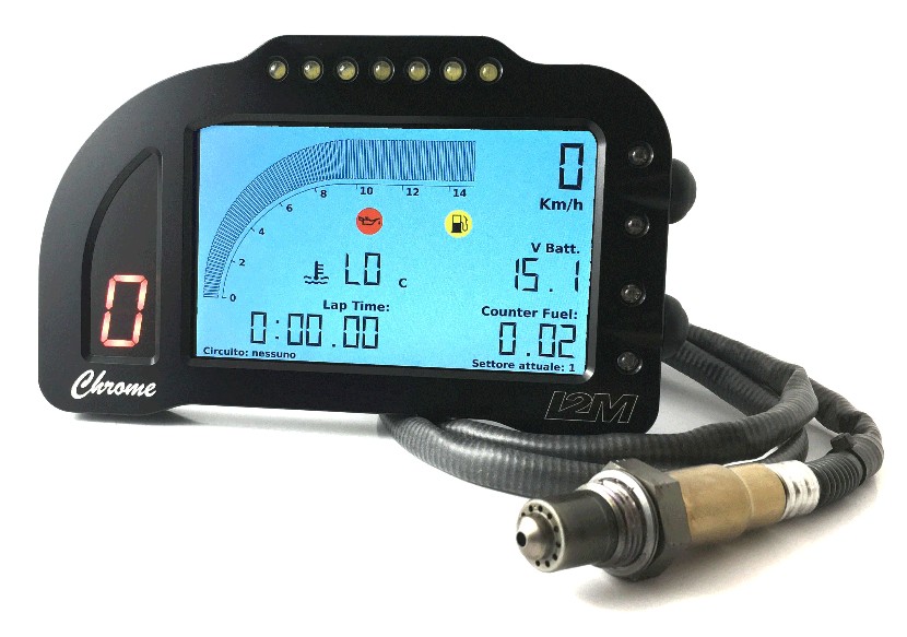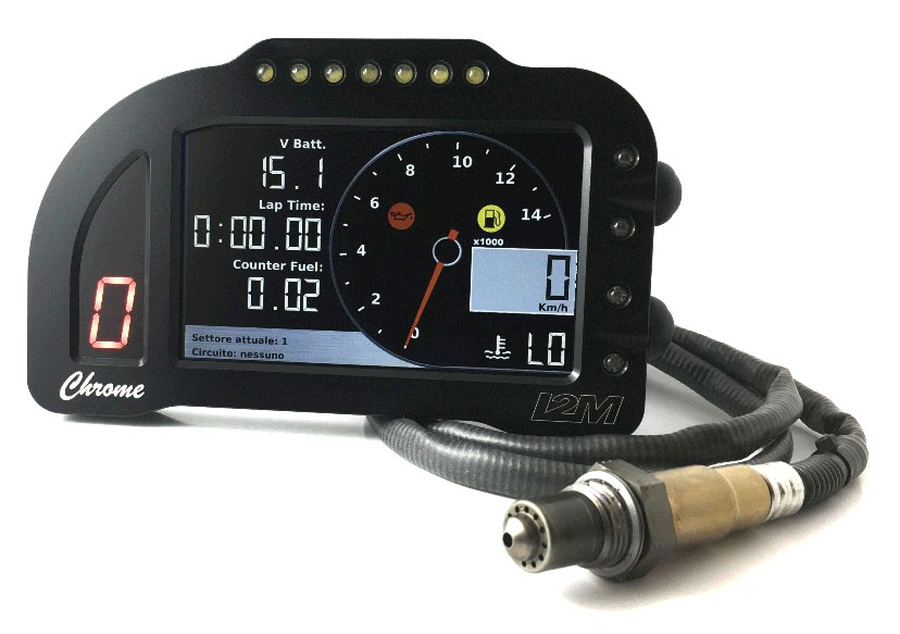Chrome incorpora al suo interno le funzioni di cruscotto, cronometro e acquisizione dati. E’ possibile creare una propria libreria di 20 circuiti scelti tra le decine presenti in memoria. Per ogni circuito possono essere memorizzati fino a 500 giri, ciascuno diviso in tre diversi settori.